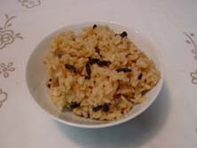 左の写真がへぼご飯である。黒く見えますよね、これが蜂なんです。味は苦味がある程度ですが、なんと言っても食感がいい。