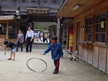 広場には昔の遊びである「ビー球」や「竹馬」などが無料で開放されており、子供達のみならず