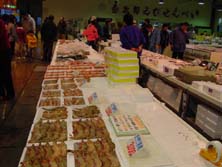 さかな広場ではニーチャン達が8時の開店に間に合わせるよう、獲れたての魚貝類を運び込んでいた。