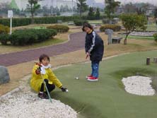 久しぶりの家族行動、今回は「パターゴルフとせんべいツアー」を合言葉にチビ達を連れ出す事とした。
