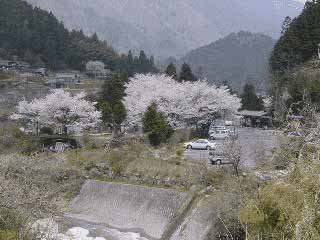 左の写真は妻籠の公共駐車場です。ちょうどこの辺りは桜の季節でしたので、時差で桜を楽しむことができました。