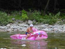 新穂高の湯 カズマサ(決して河童ではありません) 川遊び(ミカ&カズマサ)