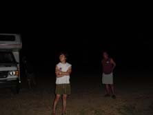 しかたなく川を隔てた河原に場所を移すが、この河原は風が強い。車をロの字に構え、なんとか宴会場設置。