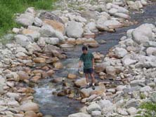 今日は、彼らのリクエストである「川遊び」そして「温泉」がメニューである。朝10時、彼らのホテルへお迎えです。
