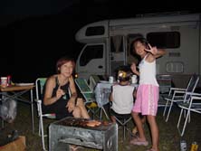 さっそくサイト作り。と言ってもテーブル、椅子の他にはBBQコンロのみの簡単なもの。
