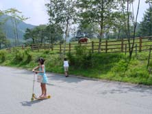 朝食後、センター内の植物写真館を見たり、チビ達のキックボードに付き合ったり。