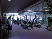 休憩場では軽食も取れるし横になってくつろぐ事も出来る。奥から宿泊棟へ通じている。