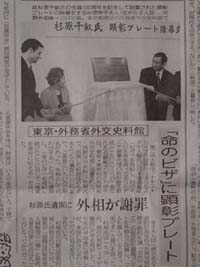 「命のビザを発給し続けたことに対して偉業を後世に伝える」と述べた。 (同新聞記事抜粋)