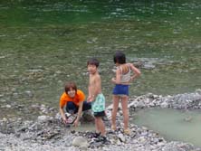 今日のミカとカズマサは温泉堀より水遊びに忙しい。私も一緒になって川に入るも、水は結構冷たく、数秒で温泉へ逆戻り。