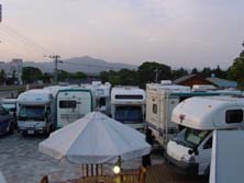 さながらキャンカーの吹き溜まりの様相。(よく揃ったもんだ)