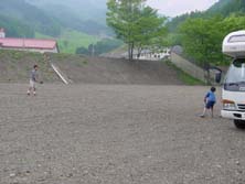 昼食を兼ねてさっそくBBQコンロの準備。この間カズマサは念願の野球をミカと楽しんでます。