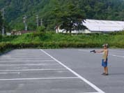 体をウォーミングアップ?。カズマサはBB弾の鉄砲で空き缶をいじめていますし