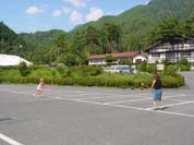 ミカと女房はミニバトミントンです。この駐車場は写真のように結構広く、