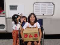 ラムネのお土産を手に