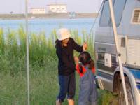 干潮時間に合わせ、いつもの木曽三川公園近くの河川敷へ。