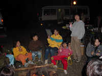 焚き火を囲んで遅くまで・・・。