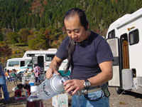 森田さんは洒落で手作りビールを数リッター持ってきており、「まだ熟成前だよ」と言いながらも振舞い始めます。