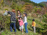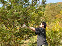 樹木にからまったつたはとても採りにくく、大人の手でもはがし取るのは難しい。