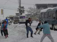 朝食後、誰が始めたのか自然と雪合戦が始まり、いい年こいたおじさん連中が