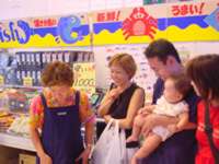 またまた、お腹も一杯なのに今晩の食材調達に「魚ひろば」へ、まだまだ入る試食・試食・・・ 今晩は、まぐろの頬肉の塩焼き、刺身、小鯵の唐揚げ、あなごの天ぷら(刺身でも食べれると言うので一匹刺身で・・)