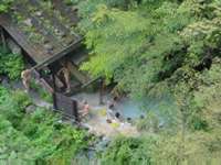 左の写真は公共の露天風呂を上から覗いた様子です。