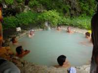 あまり大きくない露天風呂ですが、乳白色が目にまぶしくガイドブックの写真通りのお風呂でした。