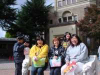 片倉館の前でponさん、くろんぼちゃん、私の3姉妹