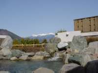 前方の雪の冠山は駒ケ岳かな?ここは、かなり景色の良い露天風呂です。