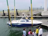 丁度一艘の大きなクルーザーがクレーンに吊られており、思わず「これか!?すっげー!」