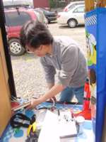 11時頃に戻ってくるとまだ一人黙々と作業中。ところが肝心の回路図を忘れてきたようで、