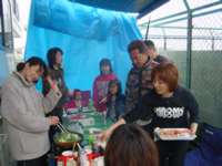 最後にはブルーシートまで出し始め、遠くから見てもはっきりと難民キャンプ状態でした。(爆)