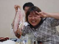 鯛の骨だけ持ち上げて絶好調のくろんぼちゃん!本当に面白いお人ですな!(爆)