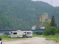 午後3時半頃に笹渡温泉のメインストリート近くの河原に到着。