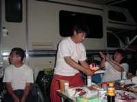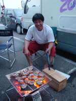 何時も感心します、くろんぼパパさんは焼き役、右はゆうさんとAKIさん