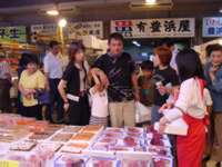 我が家で「魚ひろば」で、試食兼・今夜の食材を買い出しでーす。