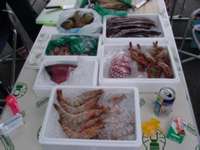 大アサリ、あさり、いか、大エビ、あかしゃえび、まぐろの刺身、たこ、さば・・・
