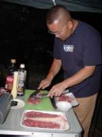 今夜のメインは飛騨牛です!!また、お肉を捌くのもぎゅうちゃん。・・・ほんとに良く働く殿方達!