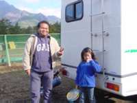 すでに・・・芝ちゃんの車で宴会が始まっていました。PICA西湖吉野に向かう予定のももくんも居ました。