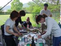 さっそく、テーブルのセッティングをし、お先に昼食を取りながらかるーく一杯の始まりです。