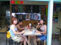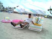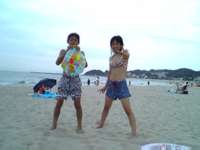 早速、海に飛びこみ遊ぶ子供に・・・パラソルの下で飲む親(笑)
