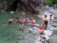 橋の下の寸志で入れる露天風呂でーす!ちょうどよい湯温でしばらく遊びます。