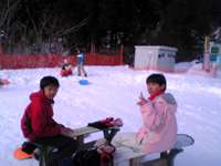 12月24〜25日 ダイナランドに初ボード いよいよ、我が家もボードシーズンに突入しました。 金曜夜カズヒコさまの帰宅後出発…スキー場迄 雪もなく順調に2時間程で到着。明日のボードに備え即就寝。 ◇◇◇ 翌朝、7時頃カズヒコさまの「起きたか?」で起床… なんと、ダイナランドは朝5時からリフト開始と いうことでカズヒコさまは既にひと滑りしているのです… 早朝の元気さにはビックリです!