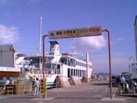 約1時間で到着。多分鳥羽迄行くのでしょう、車を乗せたフェリーが出航していきました。