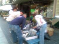 下では競りがあちこちで行われており、威勢のよい声が響き合ってます。