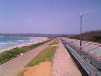 左は増穂浦海岸にある世界一長いベンチで、右はなぎさドライブウェイです。
