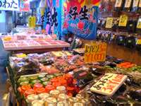 魚ひろばで、しゃこ・刺身・つまみを購入し…ちょうど12時。