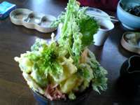 一人では食べきれませんでした。左は子天丼で右はかき揚天ざるです。