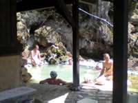 ここでは「せせらぎの湯」を何度も行き来し、白く濁った特有のお湯を愉しみます。