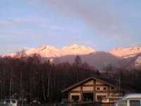 目の前の乗鞍岳は、残雪眩しく朝陽に見事に輝いていました。