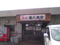 1.5時間ほど排気ガスの中を走り、お昼前に亀山に在る亀八食堂へ到着。